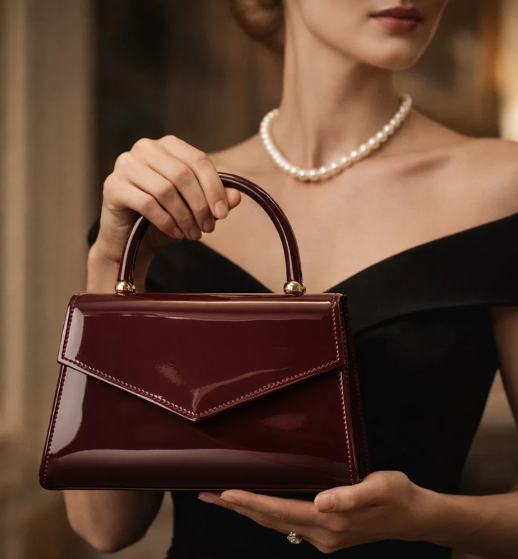 The Glossy Evening Handbag is designed to add shine and sophistication to your evening look. Featuring a smooth glossy finish, this handbag delivers a sleek and refined appearance perfect for special occasions.