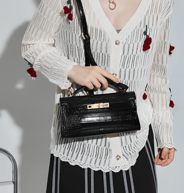 Elevate your style with this Luxury Crocodile Pattern Genuine Leather Kelly Handbag, designed for women who appreciate timeless elegance. Crafted from premium genuine leather with a refined crocodile texture, this high-end handbag blends sophistication with durability. Its structured Kelly-inspired design makes it perfect for formal events, office wear, or upscale outings. A true statement piece, this handbag combines luxury, functionality, and classic charm in one.