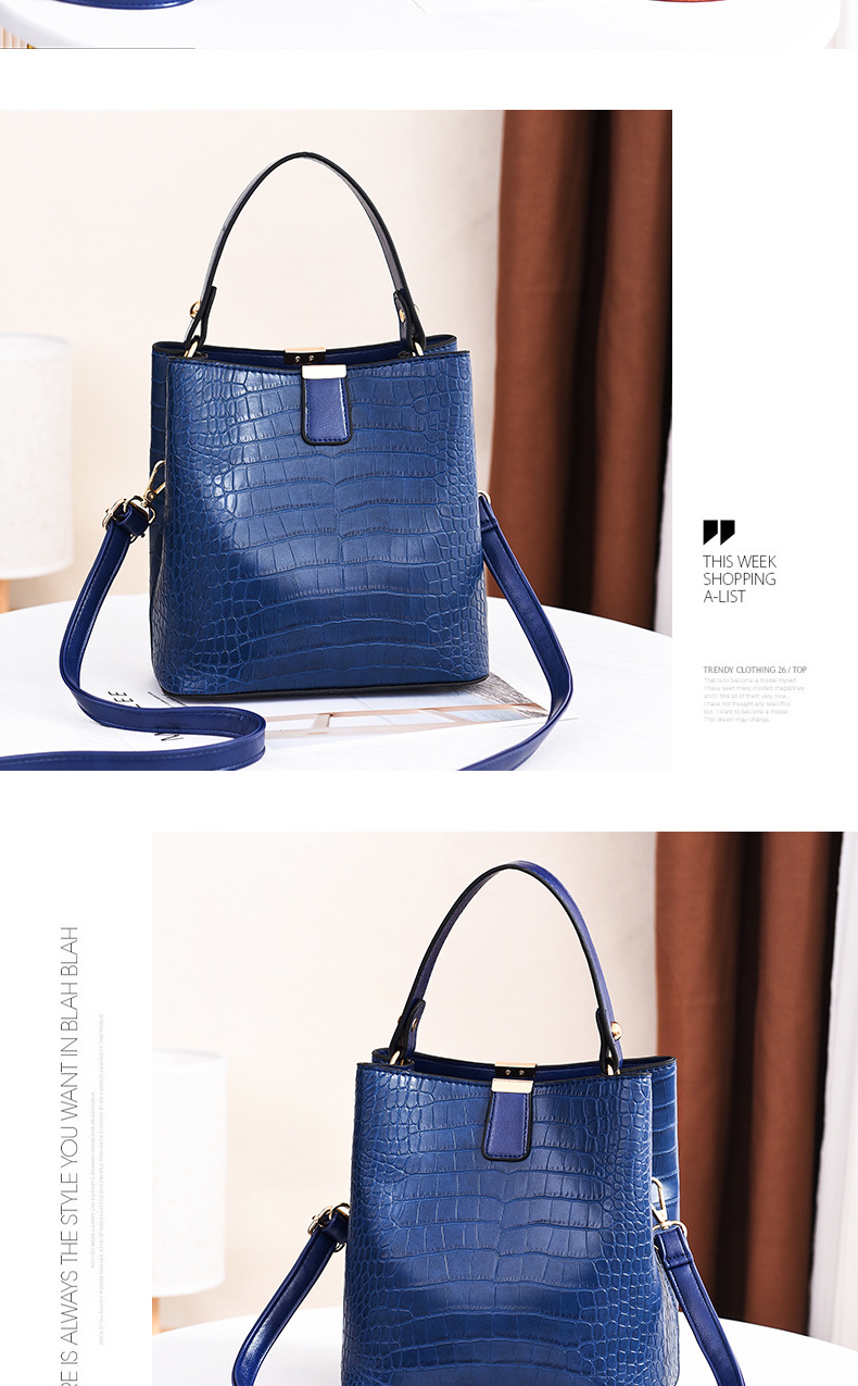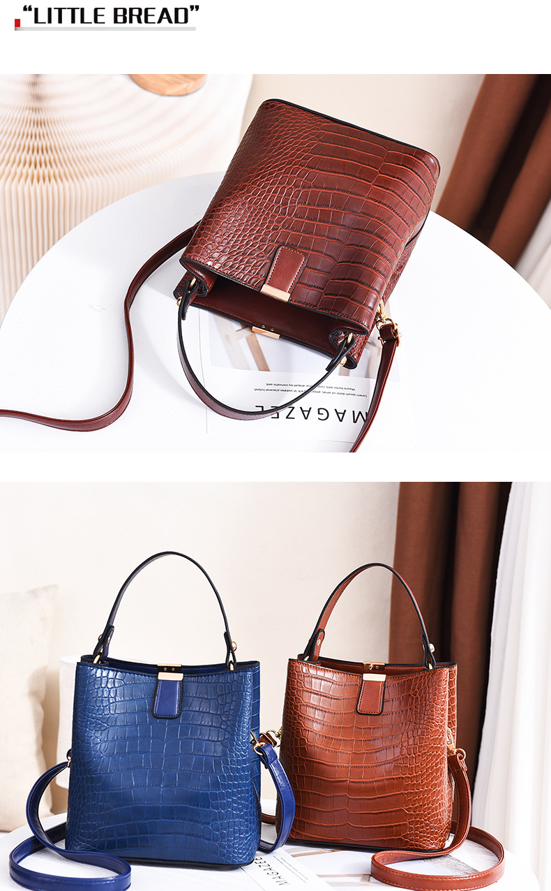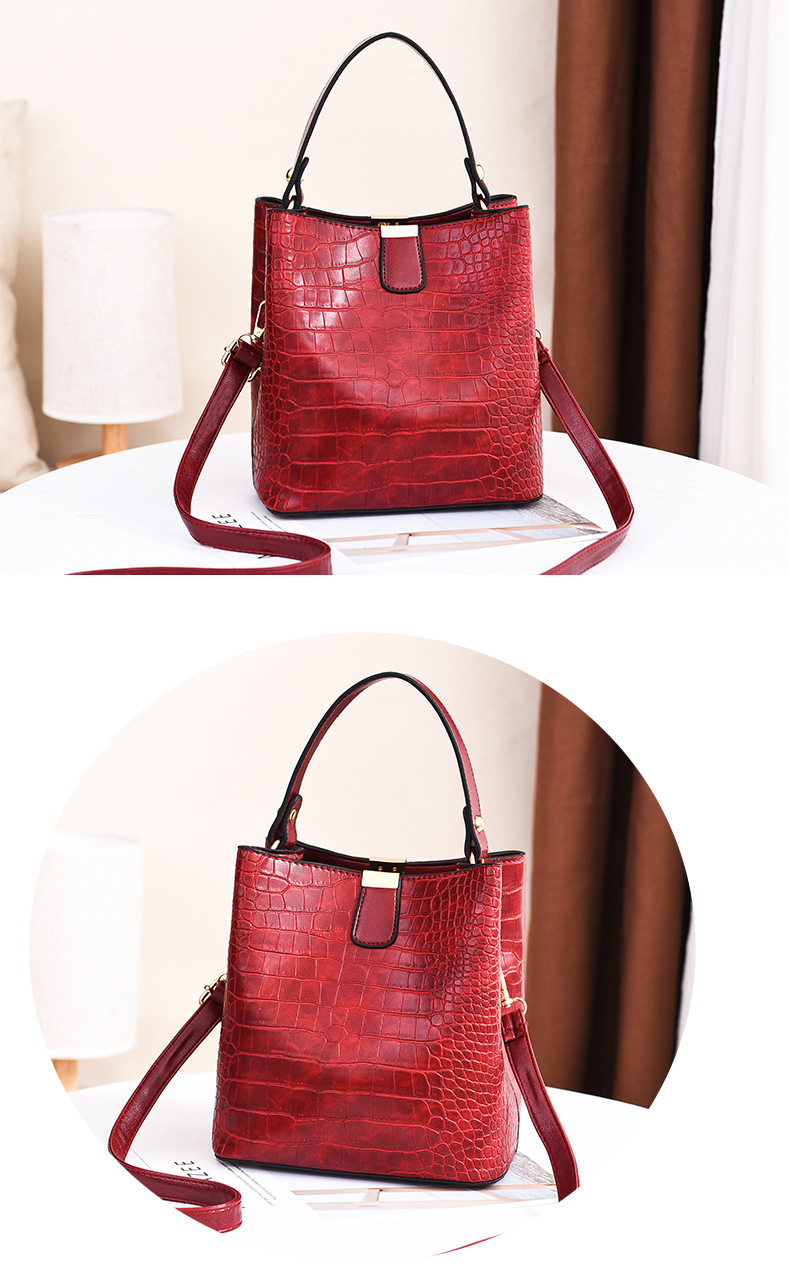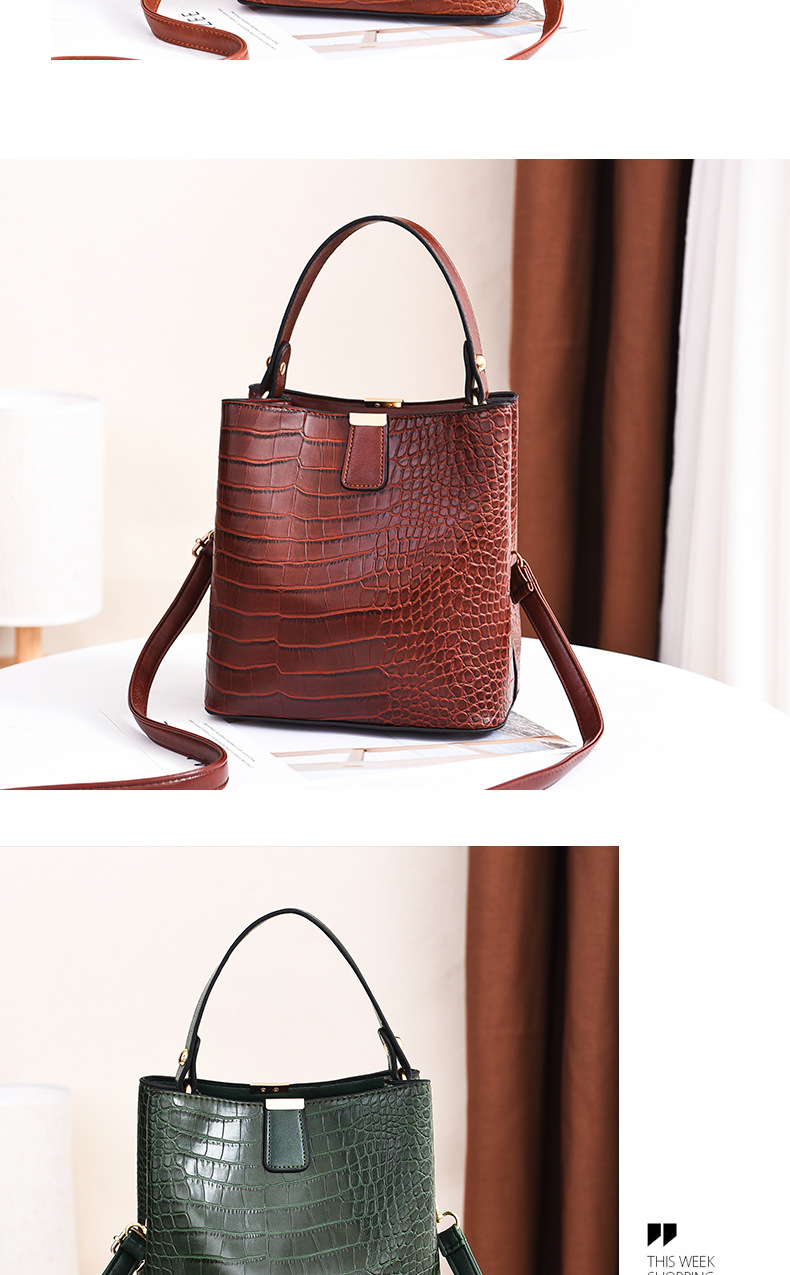 Make a bold statement with the VintageCroc Bucket Tote Bag, featuring a stunning alligator texture and retro-inspired design. This versatile bag combines elegance and functionality, perfect for elevating your everyday or formal looks. Size: (L x H x D) 19 x 13 x 21 CM."