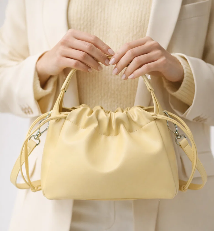 The Soft Leather Cloud Pleated Handbag features a soft cloud-shaped silhouette with elegant pleated detailing, creating a modern yet gentle look. Made from soft leather, this handbag feels comfortable to carry while offering a stylish and refined appearance.