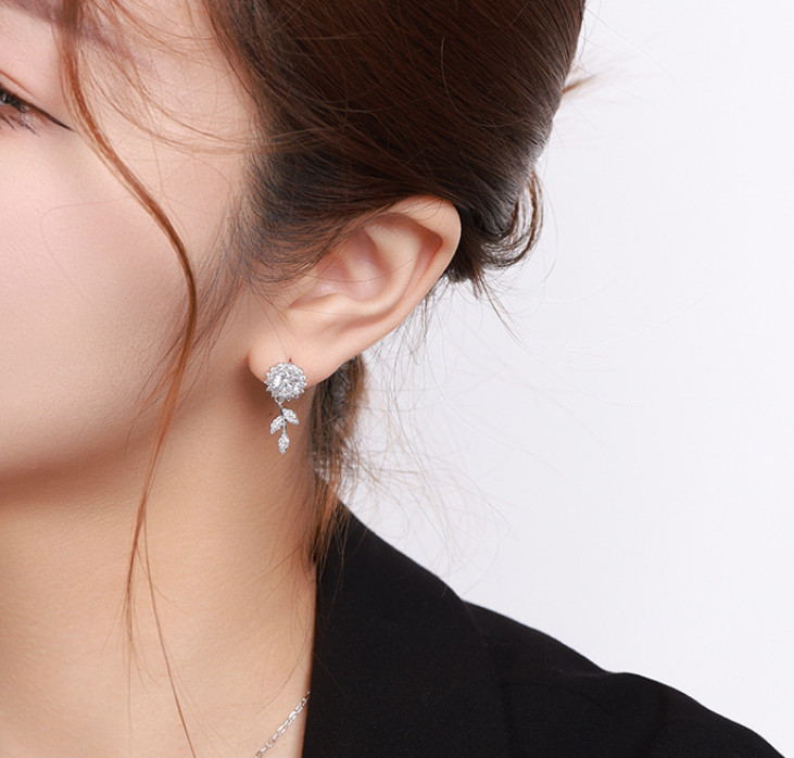 The Zircon Flower Long Earrings feature a three-dimensional flower design encrusted with sparkling cubic zirconia. Inspired by vintage elegance, these earrings offer a graceful and stylish look with a unique design touch.